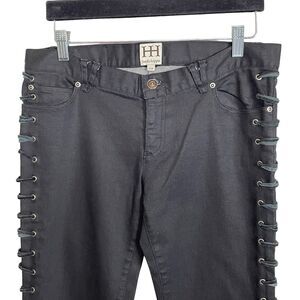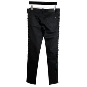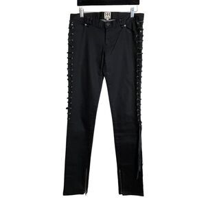 Haute Hippie Lace-Up Stretch Denim Pants Black Size 29 Ankle Zip HHHO10-4102