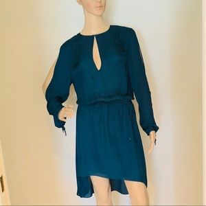 Haute Hippie Long-Sleeve Keyhole Dress Blue Coral