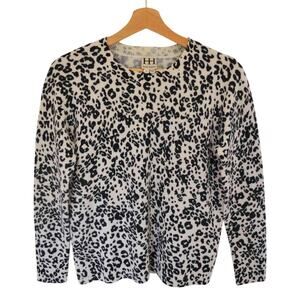 Haute Hippie Merino Wool Leopard Print Scoop Neck Pullover Sweater Size Small