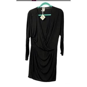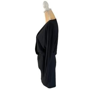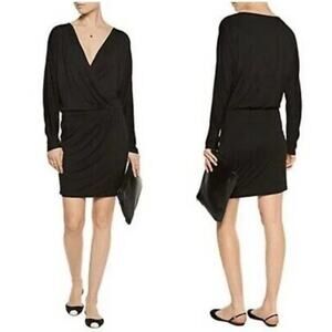 Haute Hippie Modal Surplice Neckline Faux Wrap Dress small Solid Black New NWT