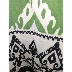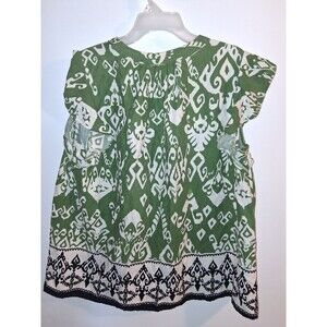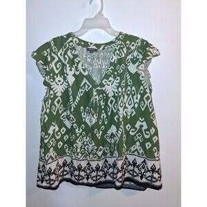 The product is a Haute Hippie multicolor geometric short sleeve V-neck blouse in size 2X. It is made of a blended fabric of rayon, linen, and linen blend, making it lightweight and suitable for various seasons. The relaxed fit and casual style make it perfect for travel, casual outings, or business occasions. The hippie, bohemian, and peasant themes reflect the unique and eclectic character of this basic blouse from the brand Haute Hippie. Easy to care for with machine washable instructions, this blouse offers a comfortable and stylish option for women looking to make a statement.