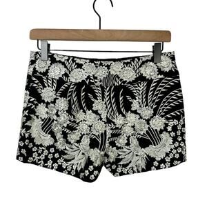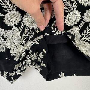 Haute Hippie NWT Black Silk Silver Floral Embroidered Lined Going Out Shorts