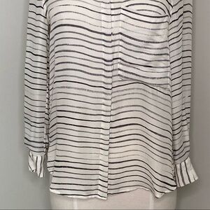 Haute Hippie Painterly Stripe Silk Button Front Blouse in Swan/Black, size XS
