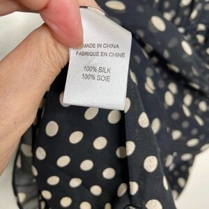 Adorable tunic dress by Haute Hippie. One Shoulder style with a polka dot pattern in black and cream. Ruffle layers around sleeve and neckline. Top layer is sheer and lining has a smaller polka dot design in same colors. Drawstring waist for adjustable fit. So cute and versatile! PLEASE NOTE: Brand and size tag were removed but Haute Hippie serial number on fabric tag. I'm also including a pic of the actual tag from another one. All measurements are approximate and taken flat with elastic at rest and not stretched.