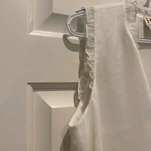 Sleeveless w/ ruffle trim at next and sleeves.