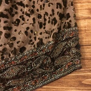 Eclectic pastiche of burnout velvety leopard spots and ornately and delicately beaded paisley trim - this slinky slip dress from Haute Hippie is teeming with glamour and global appeal.