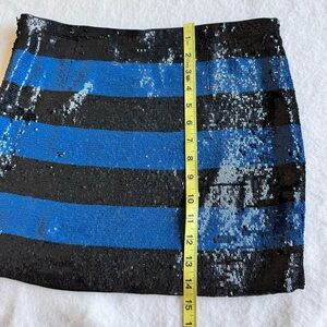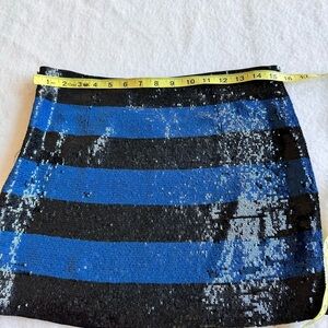 Haute Hippie Sequin Striped Blue | Black Mini Skirt Size S