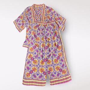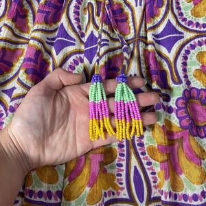 Haute Hippie Set Wide Leg Pant Open Reversible Kimono Cardigan Size M Boho, Pants have beaded tasseled drawstring.