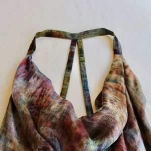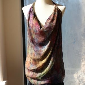 The cowl neck is gently held in place by a light weight inside the fabric.