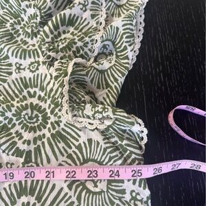 Haute Hippie Style Green White Boho Print Ruffle Sleeve Blouse 2X
