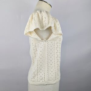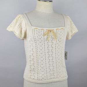 Haute Hippie Style Knit Top Short Flutter Sleeve Velvet Ribbon Trim Cream XL NWT