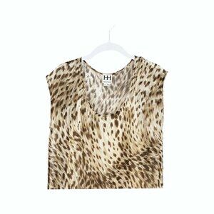 Haute Hippie Sz XS Sheer Leopard Print Tunic Top Sleeveless Shirttail Hem