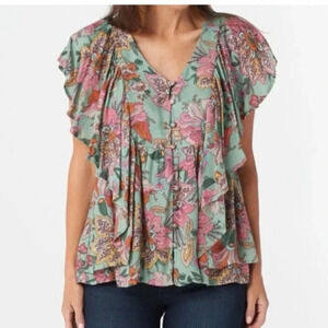 Haute Hippie Tribe Modal Floral Flutter Sleeve Boho Floral Top