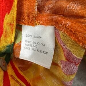 Haute Hippie Tropical Leaf Print Crop Top Womens M Orange Button Back Tie Waist