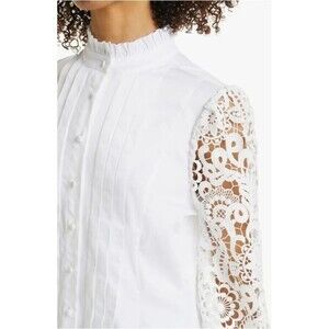 Haute Hippie Tuxedo Blouse White Lace Sleeve Retail $328 NWT Womens Size XS