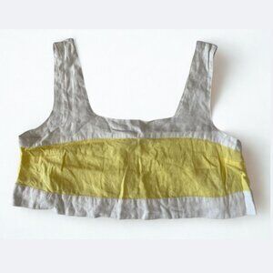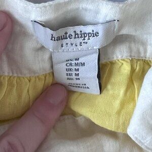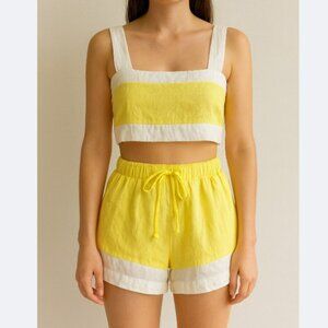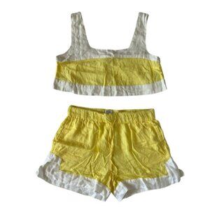 Haute Hippie Two Piece Set Yellow White Linen Blend Crop Top & Shorts Size M