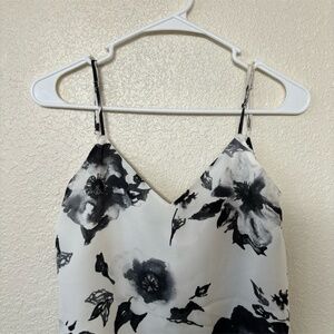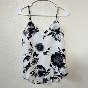 Haute Hippie. Size extra small. White and black floral print silk camisole. Cowl style back. V neckline. Adjustable straps. Lined. Excellent used condition with no signs of wear. Bust: 16.5 inches. Length: 23 inches. ALL MEASUREMENTS ARE TAKEN WITH ITEM LAYING FLAT. Shell: 100% silk. Lining: 100% polyester. ||8460||