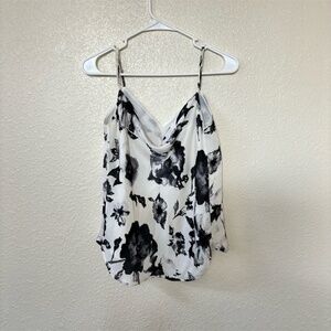 Haute Hippie White & Black Floral Silk Cowl Neckline Camisole Top Extra Small