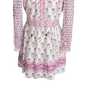 Haute Hippie White Pink Turquoise Floral Print Tie Neck Mini Dress - S