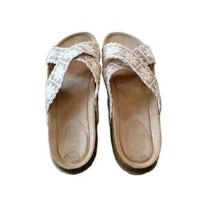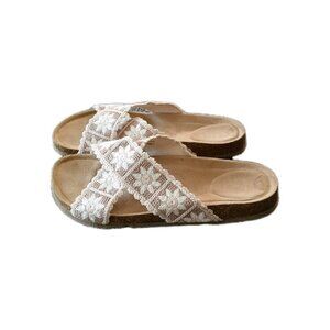 Haute Hippie Womens 9.5 Slide Sandals Crochet Flower Boho Casual Cottagecore