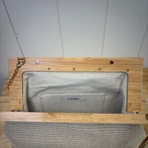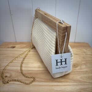 Haute Hippie Womens Boho Chic Hipster Bamboo Wood Crossbody Bag Cream Gold NWT