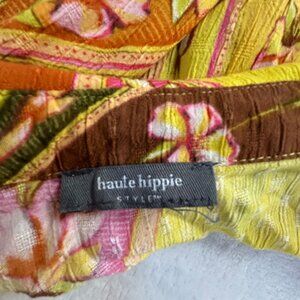 Elevate your wardrobe with this vibrant Haute Hippie wrap blouse. Featuring a boho-inspired floral design, it combines comfort and style, perfect for standout looks.