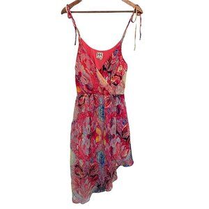 Haute Hippie Women's Pink 100% Silk Caitlyn Floral Asymmetrical Dress Small