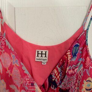 Haute Hippie Women's Pink 100% Silk Caitlyn Floral Asymmetrical Dress Small. Faux wrap style, tie sleeves. No size tag, measures like a small- Measurements Underarm to underarm: 16" Length: 36" shortest 46" longest Waist: 26"-34" Offers always welcome! Measurements are approximations taken while hanging