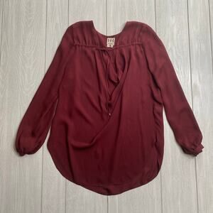 Haute Hippie Women's Silk Burgundy Red Draped Front Blouse Size Small