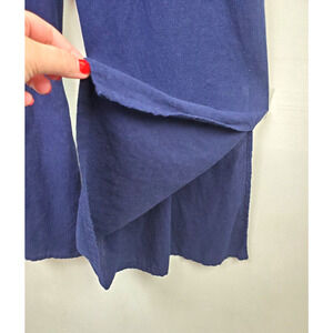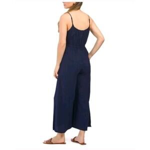 Haute Hippie Womens XS Jumpsuit Wide-Leg Linen Navy Blue Pockets Cotton Side Slits Elastic Waist