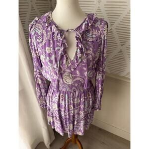 Haute Hippie Women’s XS Purple Floral Smocked Ruffle Mini Dress