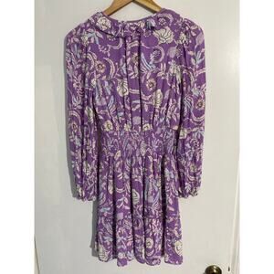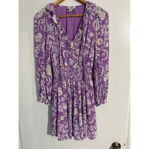 Haute Hippie mini dress women’s XS purple paisley smocked ruffle boho whimsical