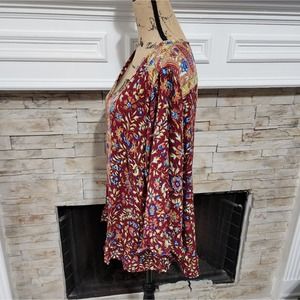 Haute Hippie red yellow floral ruffled boho peasant blouse plus size 1x 2X new!!