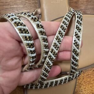 Haute Hippie slip on slides sandals beaded flats strappy resort casual US 7M