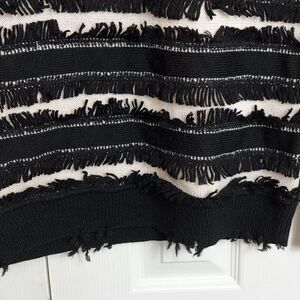 Haute Hippie Black Cream Fringe Merino Sweater XS