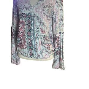 Haute Hippie Womens Pink Black Print Malia Surplice Faux Wrap Knit Top Small