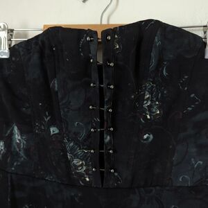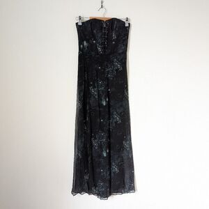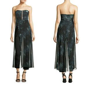 Haute Hippie black teal abstract Ginnie sheer silk strapless corset jumpsuit