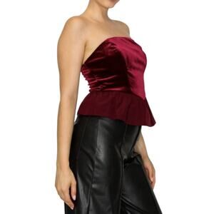 Haute Monde Burgundy Velvet Strapless Peplum Top Size L Ruffle Holiday Party NWT