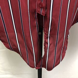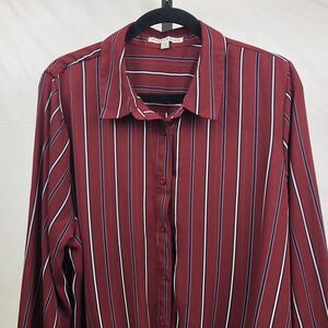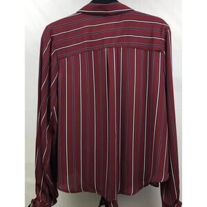 * Haute Monde Button Up Blouse Women 2XL Maroon Stripe Semi Sheer Tie Waist & Cuff