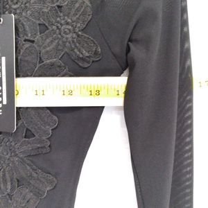 Haute Monde Cheer Lace Embroidered Bodysuit Black Medium NWT