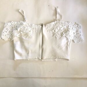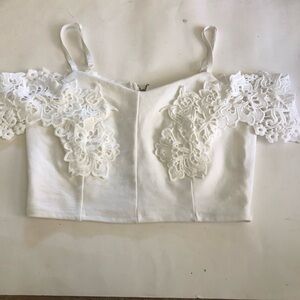 Haute Monde Cold Shoulder Lace Detail Crop Top Size Small