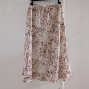 Stylish animal print midi skirt. Features cream and brown tones. Perfect for versatile wear.