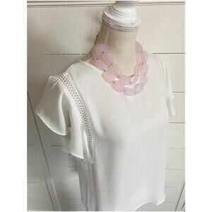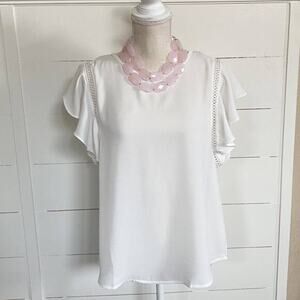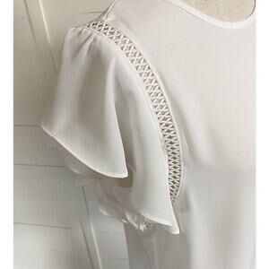 Haute Monde Cream/Off white Crochet Accents Flutter Sleeve Blouse