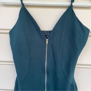 Haute Monde Green Bodycon Mini Dress with Front Zipper Size Large