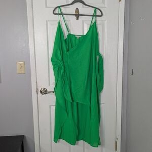 Dress, Dressy, Casual, Summer Wedding Guest, Wrap Dress, Surplice, Wrapped, Tie Front, Tied, Tie, Adjustable Straps, V-Neck, Spaghetti Straps, Kelly Green, Green, Spring, Bright, Women, Woman, Women's, Polyester, 100% Polyester, Linen Feel, Lightweight, Classic, Versatile, Size M, Size Medium, Midi Length, Reiss Dupe, RN 142577