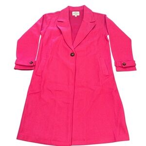 Haute Monde Longline Coat Size Large Hot Pink Side Pockets Single Button Closure