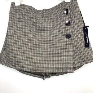 Haute Monde Tan Brown Tweed Print Mini Stretch Knit Skort