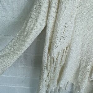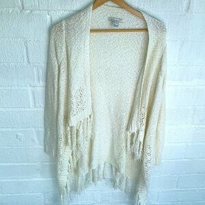 Haute Monde White Waterfall Fringe Open Front Cardigan Sweater sz S