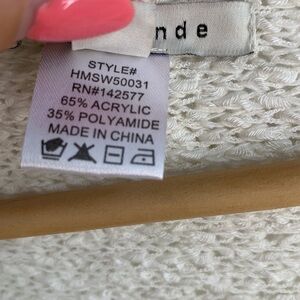 Haute Monde White Waterfall Fringe Open Front Cardigan Acrylic Knit Sweater Sz S
