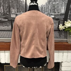 Haute Monde Women Jacket Moto Large Light Blush Pink Full Zip Stretch Faux Suede